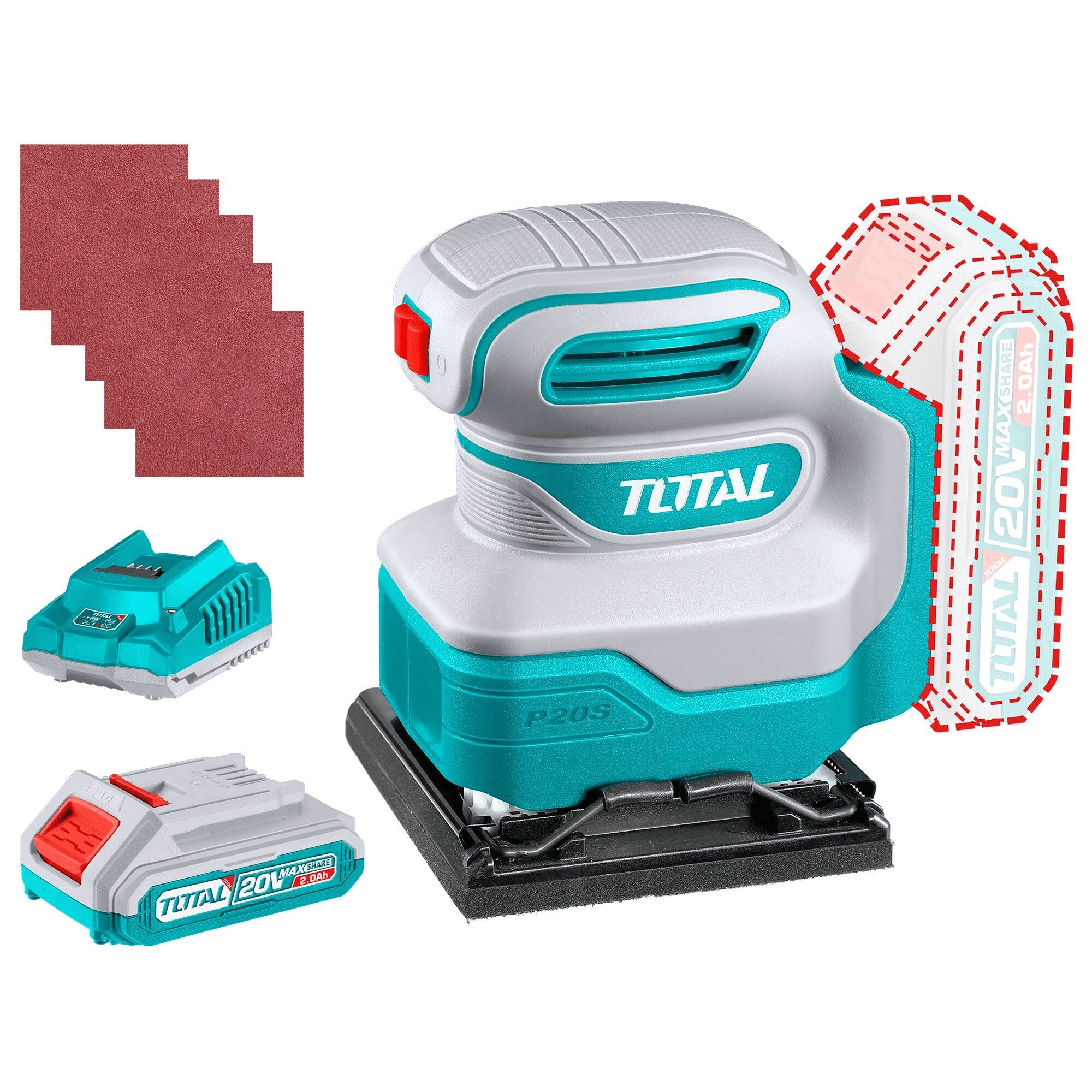 Lijadora Orbital Inalámbrica 20v + Bateria 2Ah + Cargador Total TSHSLI20141S/220